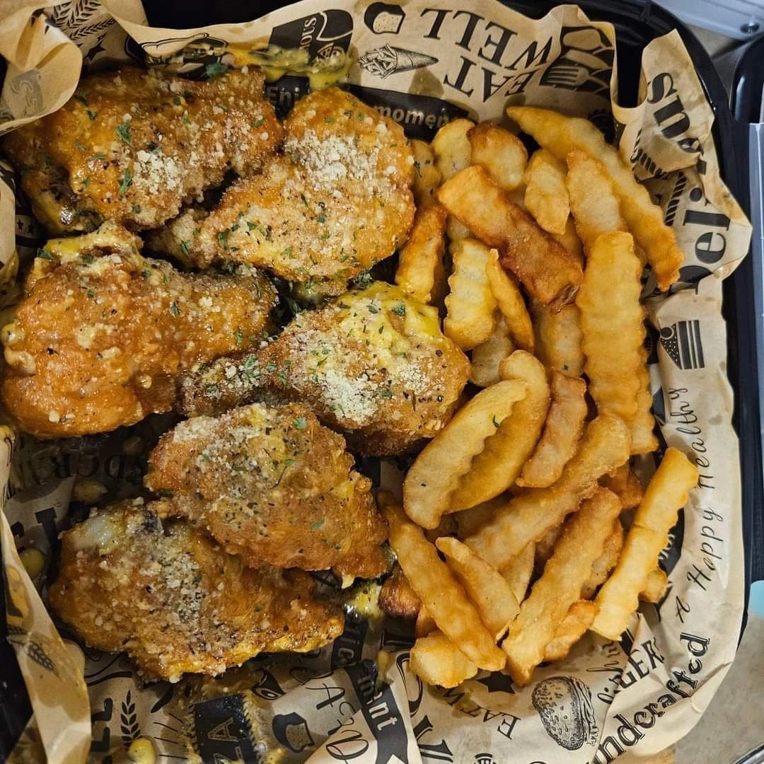 Shrimp or Chicken, seasoned to perfection, battered, and deep fried. Topped with lettuce, tomatoes and Khis Special sauce. (add pickles for a banging explosion)